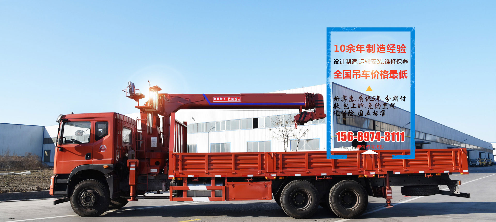 位于美丽的“孔孟之乡、运河之都”——山东济宁,地理位置优越,交通便利,是一家专门从事吊车、中小型吊车、汽车吊、随车吊等特种车辆设计、开发、销售于一体的大型综合现代化企业,公司认真贯彻坚持“质量为先,诚信经营,科学管理,持续改进”的质量方针,明确质量目标,恪守质量保证,为顾客提供优质的产品和服务,以质量立足市场,促进企业的不断发展和壮大。竭力为广大顾客提供优质产品和服务